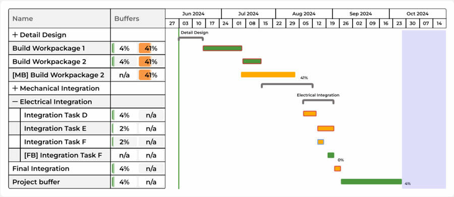 From Project Buffers (PB) that protect the overall timeline to contractual Milestone Buffers (MB) that safeguard timely achievement of critical milestones, and Feeding Buffers (FB) that protect integration points within your schedule, LYNX ensures that all potential delays are accounted for.